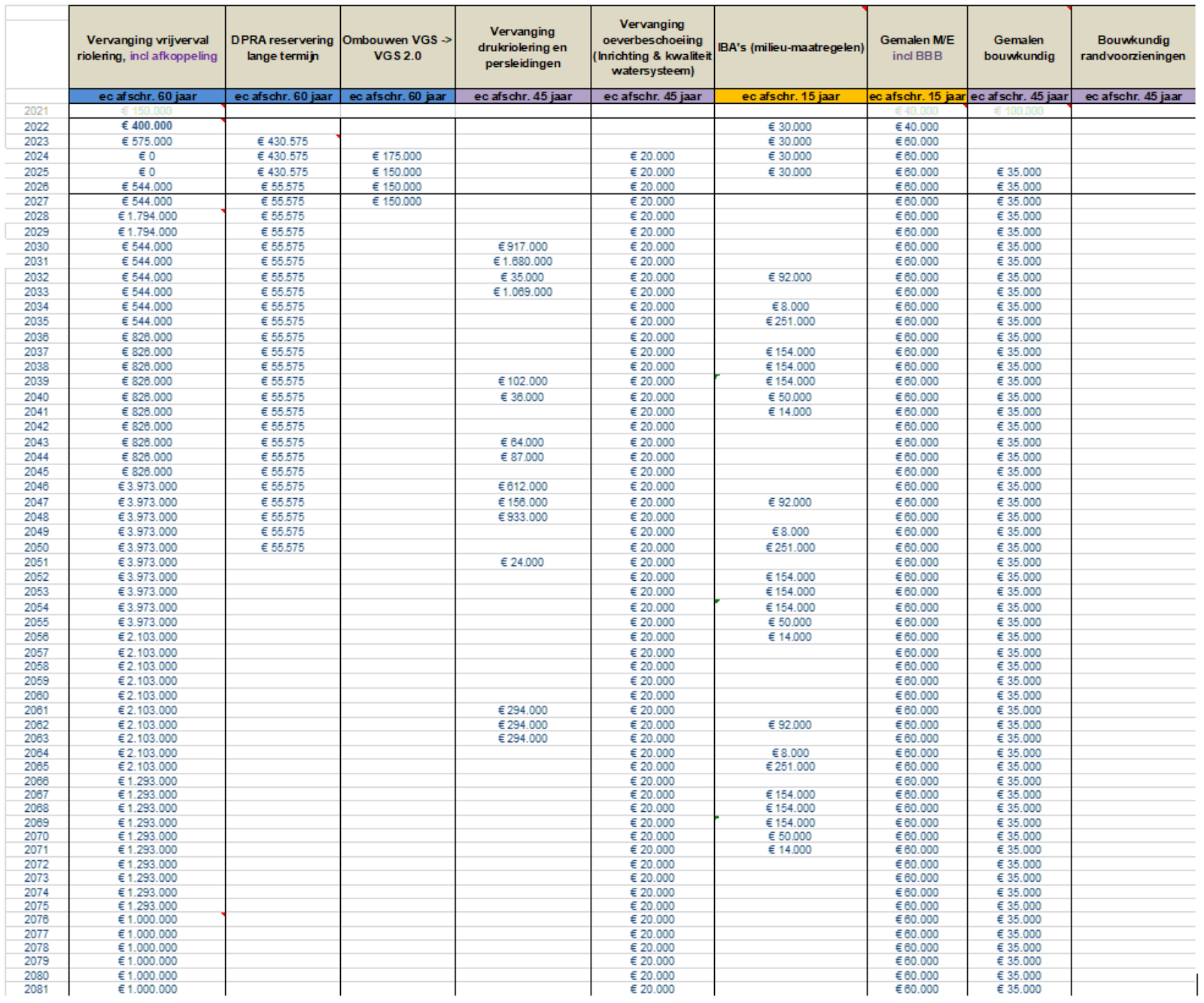 Onderstaande tabel toont de langjarige investeringsplanning. Op basis van deze bedragen is de ontwikkeling van de rioolheffing gebaseerd.