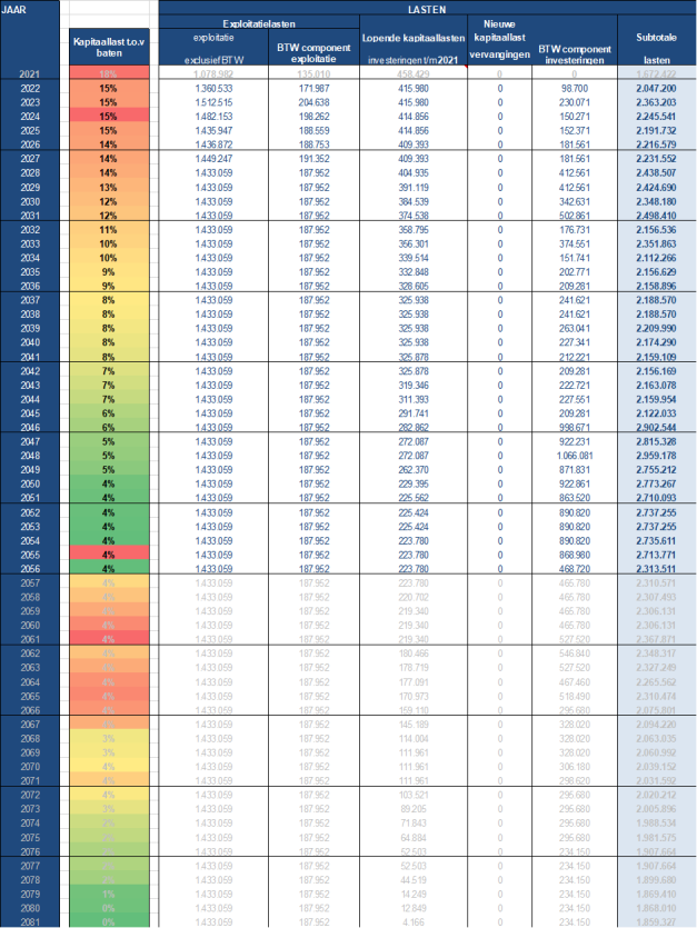 De lopende kapitaallasten van investeringen tot en met 2021 zijn aangeleverd door de gemeente