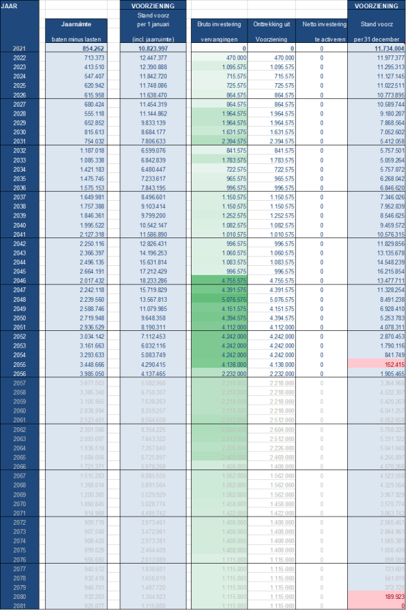Investeringen worden betaald uit de voorziening. Er worden geen nieuwe kapitaallasten gemaakt.