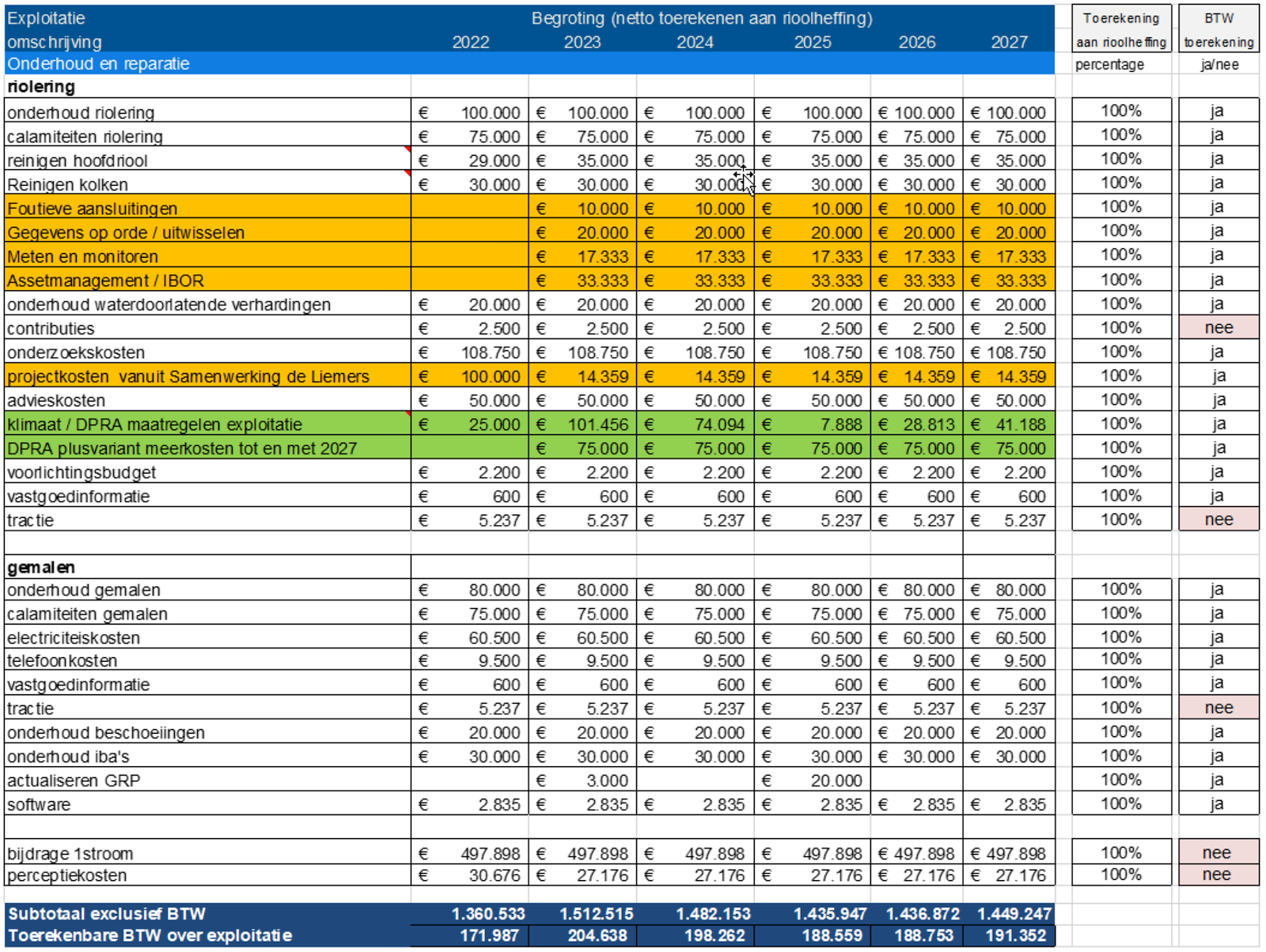 De gemeenten hebben de financiële informatie aangeleverd afkomstig uit de (meerjaren)begroting. In overleg met de beleidsmedewerker en financieel consulent zijn exploitatielasten en/of investeringen aangepast op basis van de informatie uit het Watertakenplan (WTP).